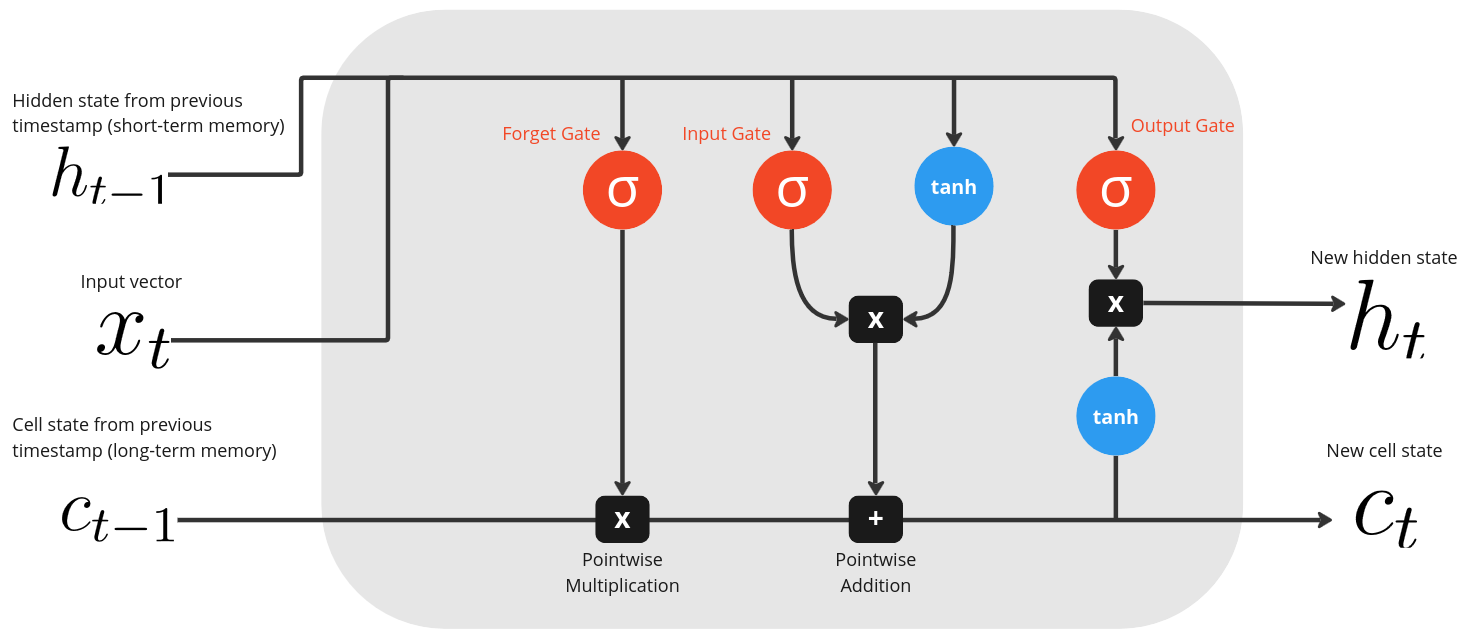 RNN is not able to consider information far in the past, therefore LSTM is introduced: