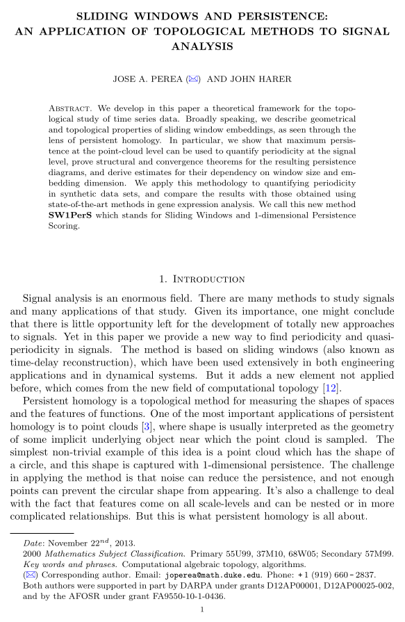 Jose Perea and John Harer, Foundations of Computational Mathematics (2015).
