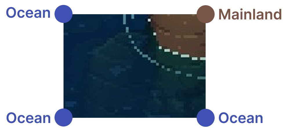 Using the corners, we can sample four points and check if they are part of the ocean or the mainland.