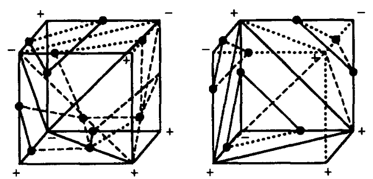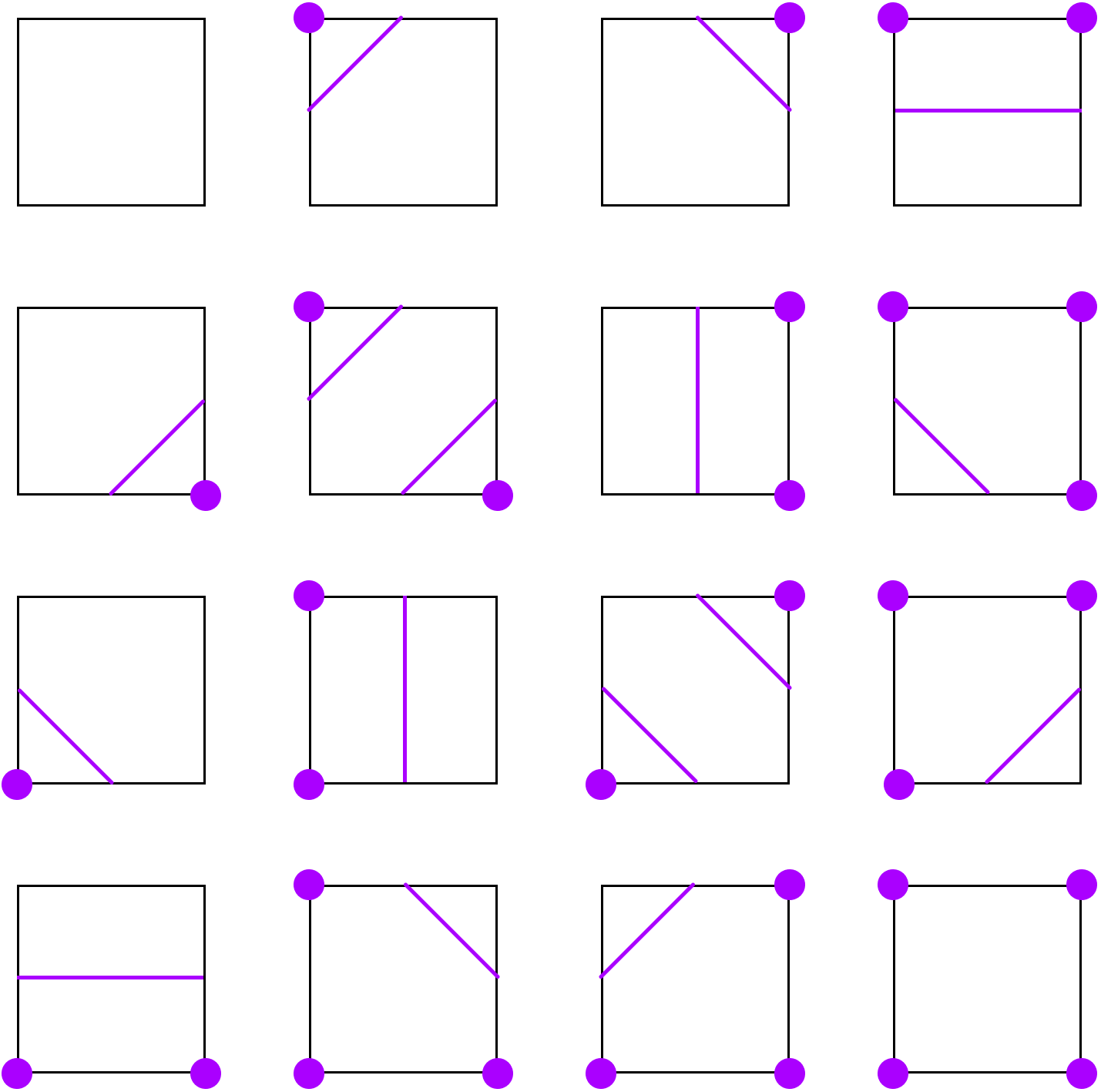 $2^4 = 16$ possible surface intersections, at the core only 3 patterns.