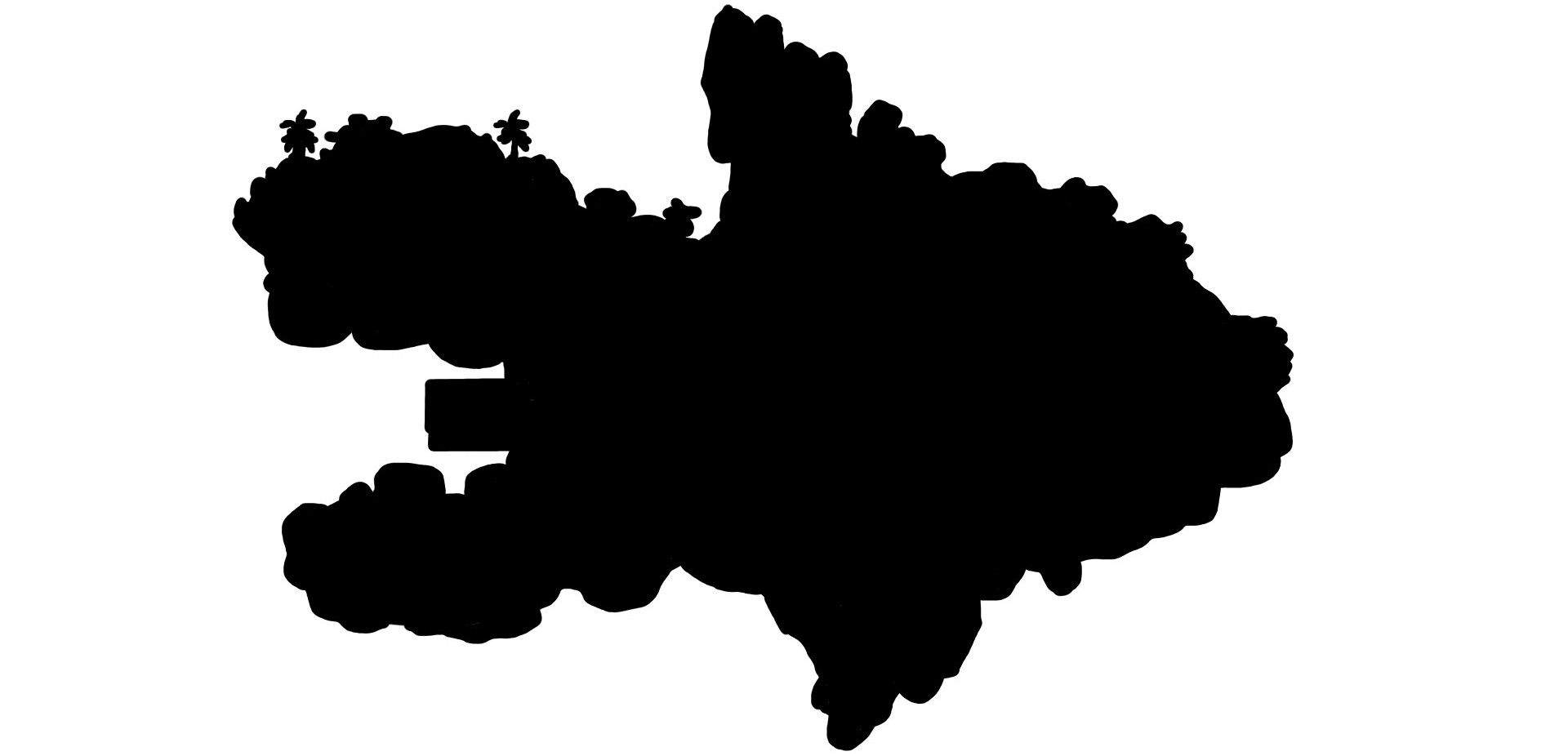 binary states (ocean / mainland) in a discrete domain (pixels).