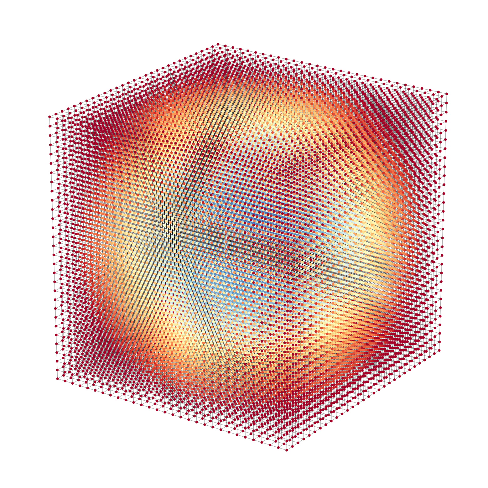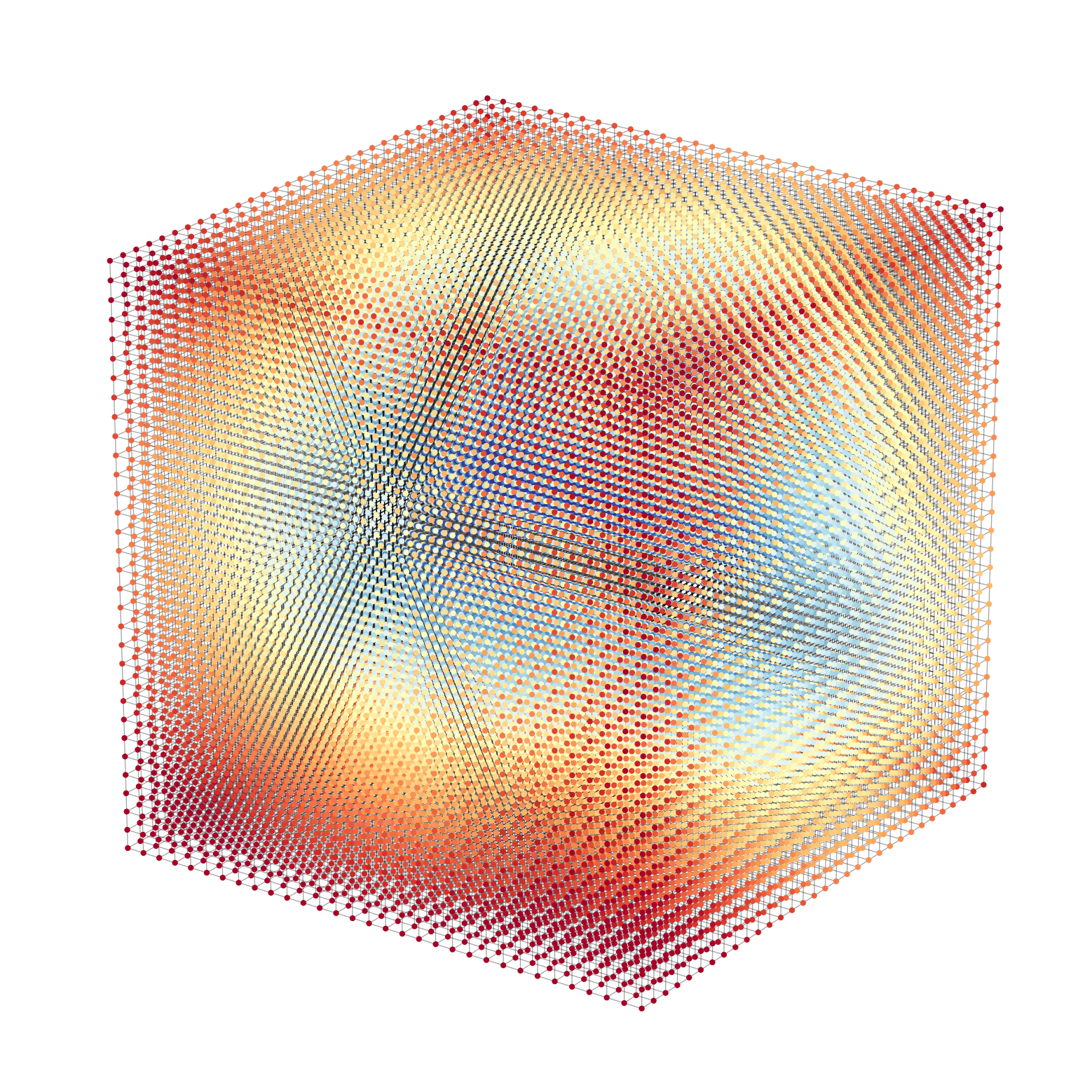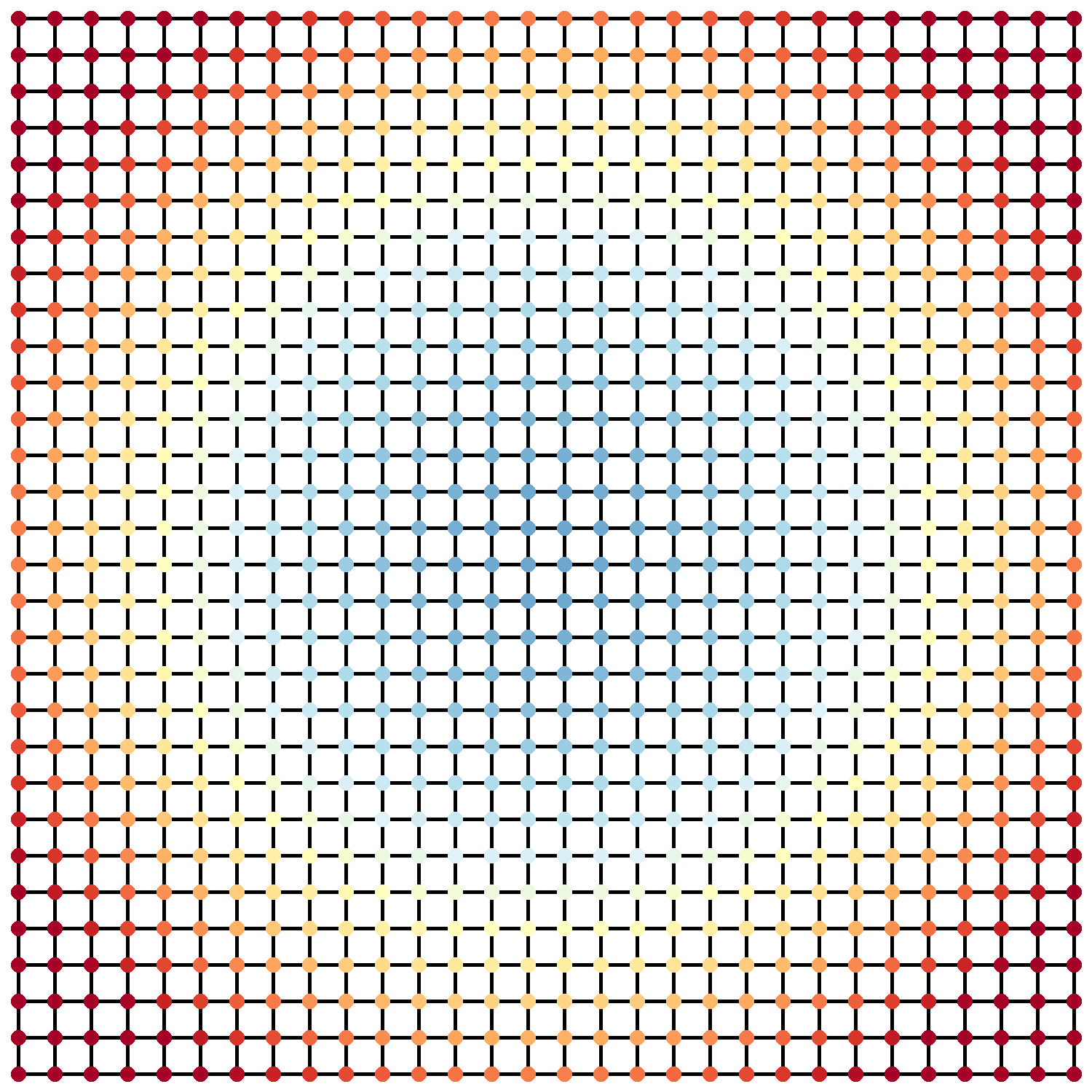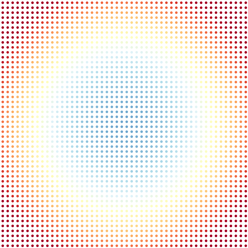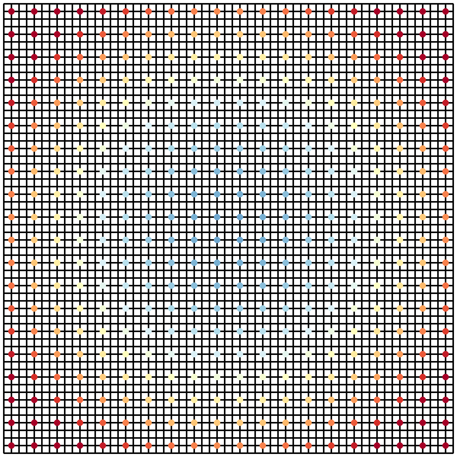 Now we have a 50 x 50 grid of sample points instead of a continuous domain. Still, every point has a distance value!