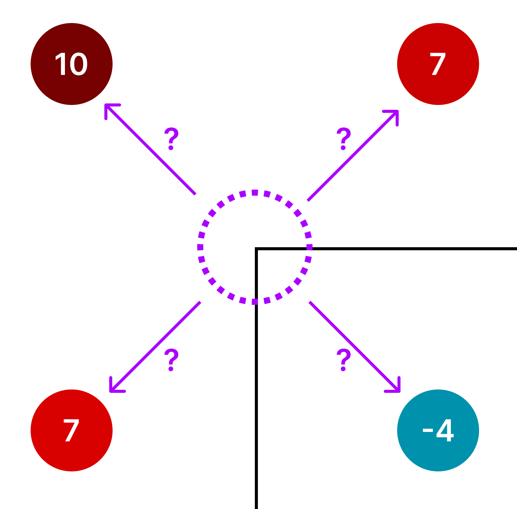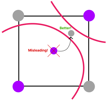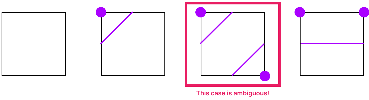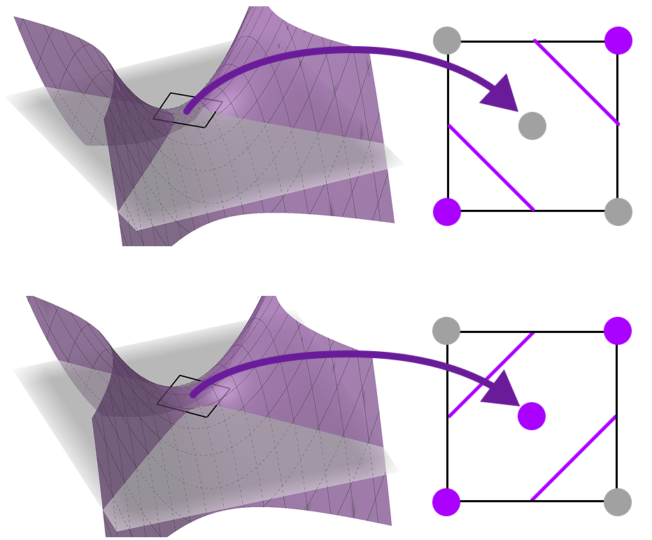 By taking another sample in the center of the square, we can now eliminate the ambiguity.