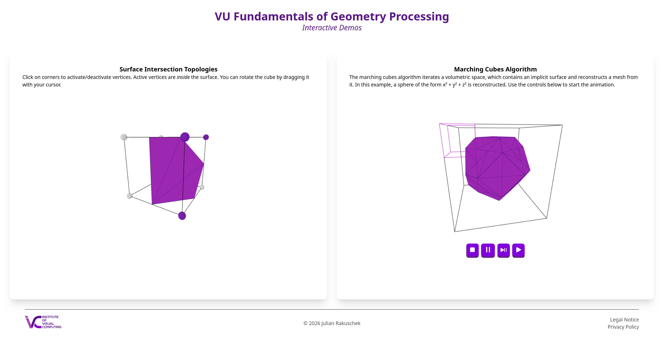 This chapter is based on a lecture by Prof.in Dr.in Olga Diamanti - formerly taught in the course "Geometry for Computer Science" @ TU Graz. Her slides in turn are based on slides by Daniele Panozzo and Olga Sorkine-Hornung. The use of their figures is attributed via [Diamanti et al., 2023] to thank them for their valuable contributions.