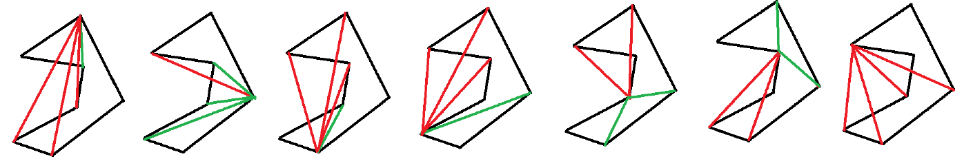 In a planar convex polygon, all internal angles are at most 180°. Convex polygons can be easily triangulated from any vertex.