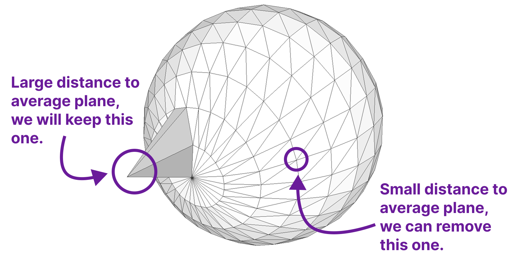 The distance to the average plane is a local error metric: Measures the distance between a face and a subpatch.
