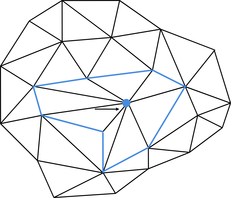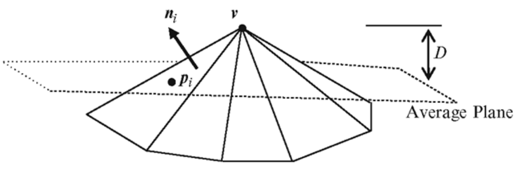 We need to find a direction from which we look at the hole. For this we compute the average normal vector of all adjacent faces of a vertex.
